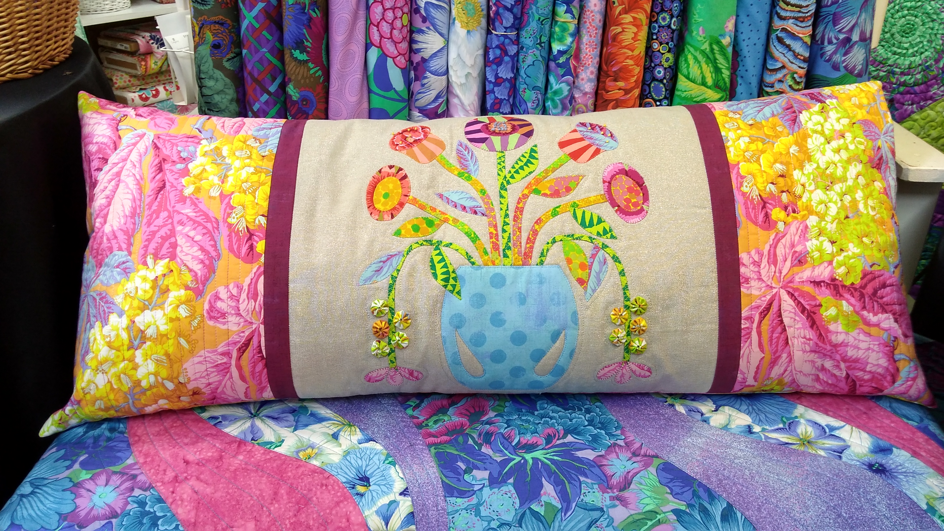 Thanks to Hickory Stick Quilt Shop in Hannibal, Missouri for inviting me to be their guest designer as they selected the fabrics and one of three projects for the Scrap Lab Challenge, a featured article in Quilts and More magazine. The magazine and project kits will be available at Hickory Stick April 24. Bench pillows continue to be a popular quilted project. Check out all the patterns you can make and change out as seasons change.