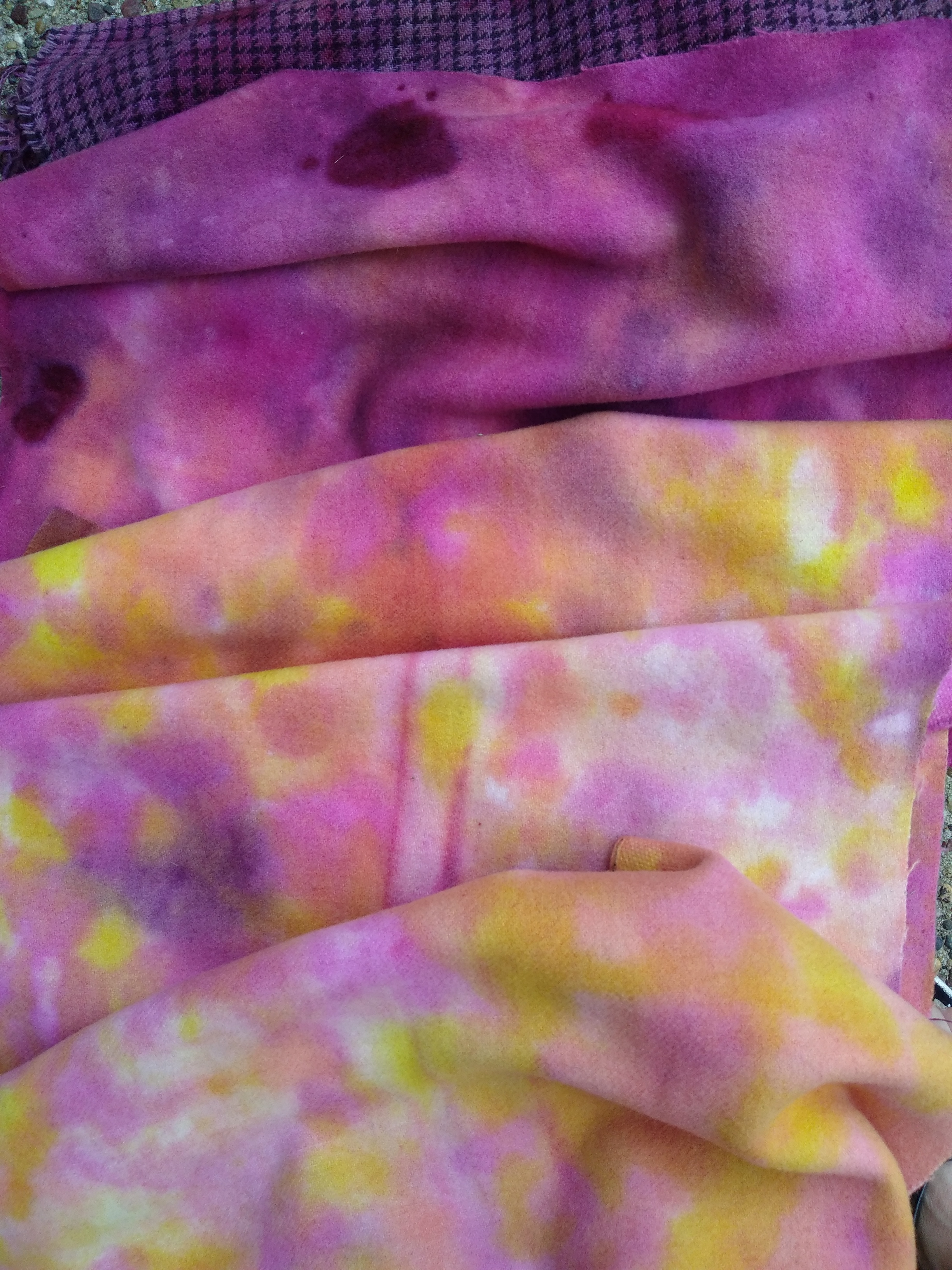 I have been resisting the urge to get back to my fabric dyeing but today I could resist no longer. The creative urge won! I had my color choices in mind, again drawing from nature. The Calhoun peaches first came to mind but at a recent class my daughter and I enjoyed our lunch in the Des Moines Art Center’s Rose garden. While the roses were nearing the end of their beauty they were still worthy of commemorating. First step for me is to dye some wool in colors from Cabernet to persimmon to sunflower yellow. Next step will be to decide on design. Will it be a single rose in a bud vase or a whole bouquet? Hmmm, more creative thinking time needed.